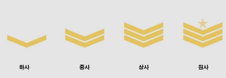 특이한 것은 준위라는 계급이 있습니다. 황금색 다이아몬드 계급으로 표시되어 있는데 주로 고도의 전문 기술 분야에서 일을 하고 있습니다. 원사에서 준위로 자동으로 진급하는 것이 아니라, 상사 계급에서 시험을 통과해서 준위 계급으로 오를 수 있습니다.