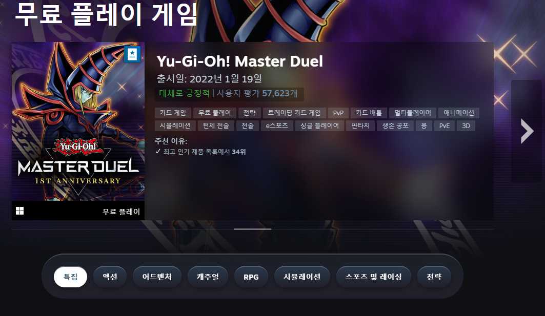 무료게임에는 무료로 다운 받아서 즐기실 수 있는 게임이 있습니다. 구매하시기 전에 몇 개의 게임을 무료로 다운 받아서 실행해 보시기 바랍니다. 하단을 보시면 특집, 액션, 어드밴처 등 원하시는 게임 장르를 선택할 수 있는 카테고리가 있습니다.