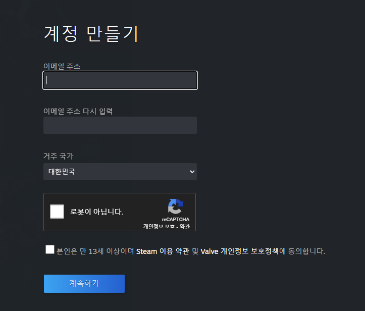로그인을 누른 후 아래의 스팀 가입하기를 클릭 합니다.