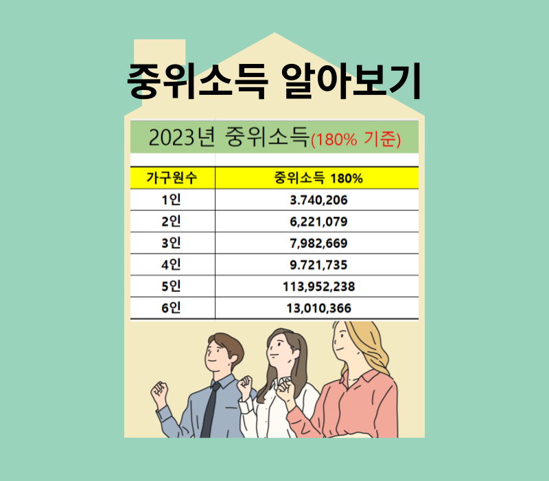 2) 연소득 연 7,500만원 이하 그리고 가구소득 기준 중위소득 180% 이하만 가능합니다. 2023년 기준 중위소득은 아래의 표를 참고해 주시기 바랍니다.