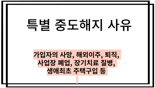 2) 개인사정으로 중도해지할 경우에는 정부의 지원금 및 비과세 혜택을 받을 수 없습니다. 그러나 다음의 경우에는 특별사유에 해당되어 불이익 없이 해지가 가능합니다.