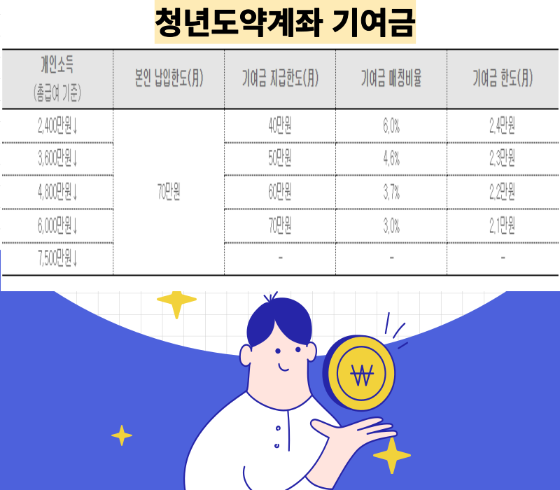 1) 일단 납입해야 하는 금액은 개인의 연소득에 따라 40만원~70만원까지 다른 금액이 책정되어 있으므로, 자신의 현재 예산 상태와 비교한 후에 결정하셔야 합니다. 그리고 개인 소득에 따라 정부에서 지원하는 기여금도 다릅니다. 예를 들어서 연소득 2,400만원 이하 지원자는 월 6%를 지원 받을 수 있고, 연소득 6,000만원 이상이면 지원금이 없다고 생각하셔야 합니다.